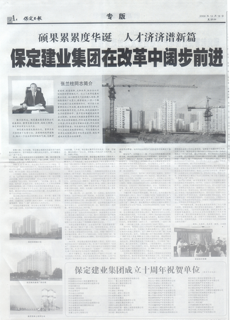 保定日?qǐng)?bào)專(zhuān)版報(bào)道集團(tuán)公司成立十五周年